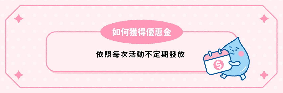 - 每次發送之優惠金具備不同使用期限與條件,請依該次優惠金發送說明為準使用